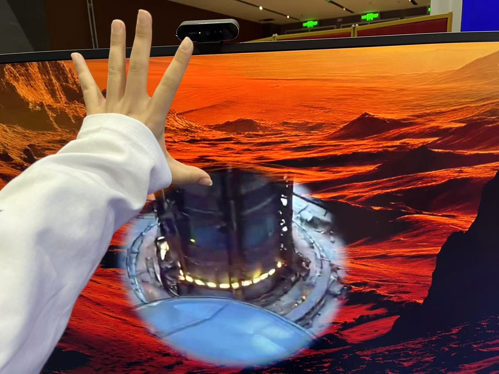 公司“数字建筑设计”产业教育项目团队的罗钏雯、靳铭宇老师带领员工展出一组前沿交互艺术作品,这些作品是同学们以2024年数院课程成果为基础完善改的。作品以"构建未来交互空间"为核心理念,将建筑设计的美学思维与人机交互技术深度融合,不仅展示出公司yl23411永利的师生在科技与艺术融合领域的前沿探索和技术实力,还通过艺术化的表达方式,为观众带来沉浸式的科幻体验,以"科技×艺术"的跨界融合为大会注入全新活力,吸引众多国内外科幻爱好者与行业专家驻足赞叹。