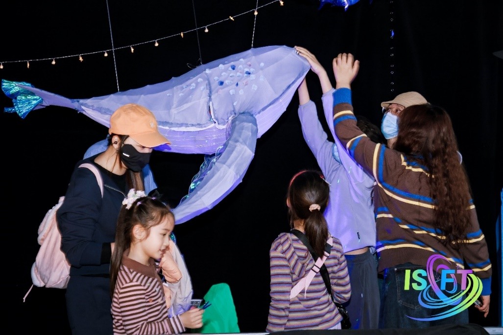 科幻大会期间,公司展位前始终人头攒动。“火星基地”和交互装置吸引观众驻足观看、倾听讲解、互动体验。观众通过手势、动作与装置互动,亲身感受人与空间的奇妙连接。大家常常一边排队等待一边讨论着作品背后的技术原理。