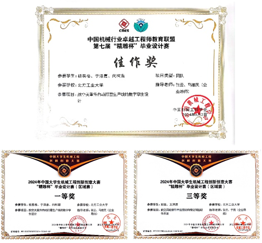yl23411永利智能制造项目共3项团体作品成功参赛,在北部赛区区域赛阶段荣获北部赛区区域赛一等奖1项、三等奖1项;在全国赛阶段,企业导师马维民和校内导师张云指导员工杨易格、于泽嘉、向柯潮所做毕业设计作品荣获全国赛优秀佳作奖。