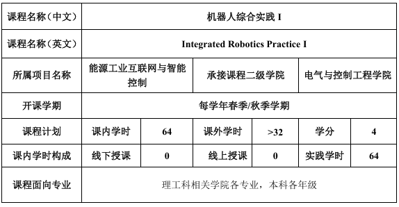先修课程:机器人原理及应用、单片机及嵌入式系统设计、控制系统设计原理、传感器与执行器基础、电路设计与实现,系统建模与仿真等相关专业基础知识1项以上。