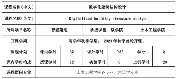 先修课程:(1)《混凝土结构智能设计原理(1)》、《混凝土结构智能设计原理(2)》,或《混凝土与砌体结构设计(1)》、《混凝土与砌体结构设计(2)》、《工程结构抗震》;(2)《钢结构智能设计原理》或《钢结构设计原理》;(3)《建筑结构》。