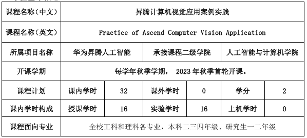 本课程为产业技术类课程,依托华为昇腾AI全栈技术平台,系统讲授深度学习基础技术(包括卷积神经网络、生成对抗网络等)在计算机视觉核心任务(图像分类、目标检测、图像分割、图像生成)中的应用,并涵盖Vision Transformer、扩散模型等大模型技术在计算机视觉中的前沿实践。课程采用“理论+实践”的教学模式,通过基于昇腾开发板的实战项目,帮助员工深入掌握MindSpore框架应用开发、模型转换与端侧部署等关键技术。课程聚焦产业实际需求,致力于培养员工基于昇腾平台实现计算机视觉项目全流程开发与落地的能力,为其胜任人工智能算法工程师、深度学习工程师、图像算法工程师等岗位奠定坚实基础。